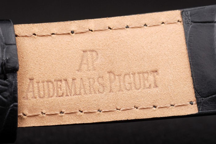 Bracelet: Heat embossed Audemars Piguet zwarte krokodillenleren band met Audemars Piguet gegraveerd roestvrij staal fold-in clasp