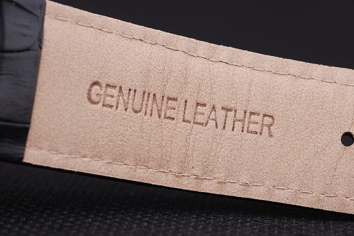 Bracelet: Black krokodil lederen band met ge mbossed Audemars Piguet naam en logo en een Audemars Piguet ingeschreven 18k rose vergulde flip-over hook clasp