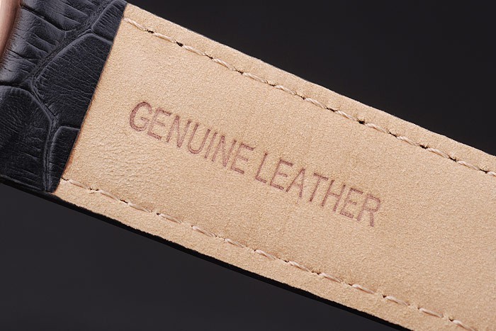 Bracelet: Black krokodil lederen band met ge mbossed Audemars Piguet naam en logo en een Audemars Piguet ingeschreven 18k rose vergulde flip-over hook clasp