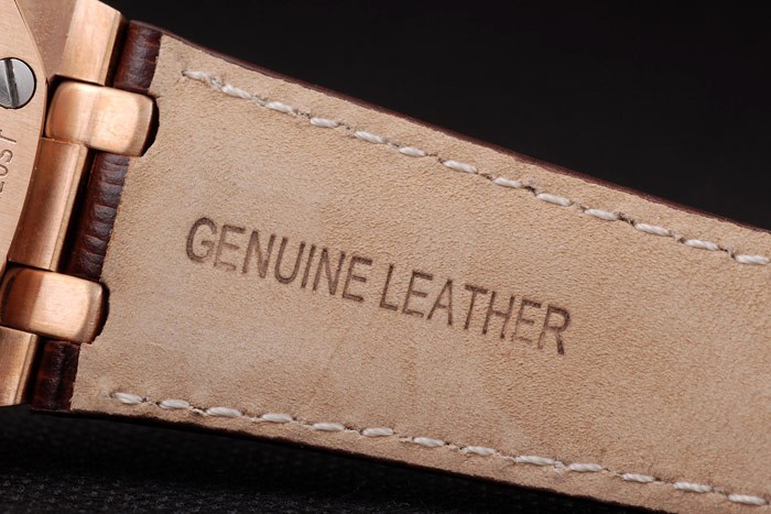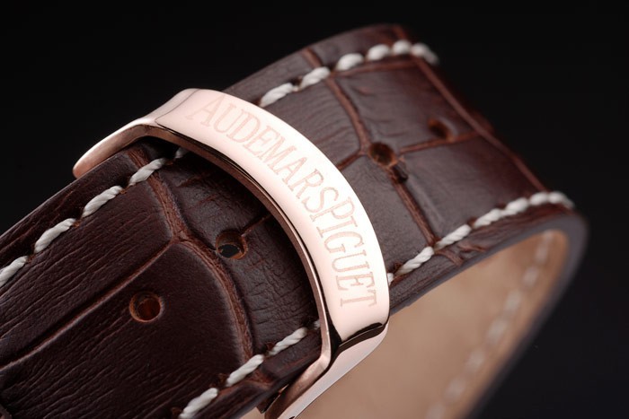 Bracelet: Heat embossed Audemars Piguet bruine krokodil lederen band met Audemars Piguet gegraveerd rose vergulde opvouwen in clasp