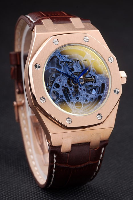 Terug Royal Oak gegraveerd Rose vergulde weer vastgeschroefd met transparante midden onthullen innerlijke mechanics