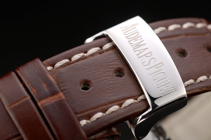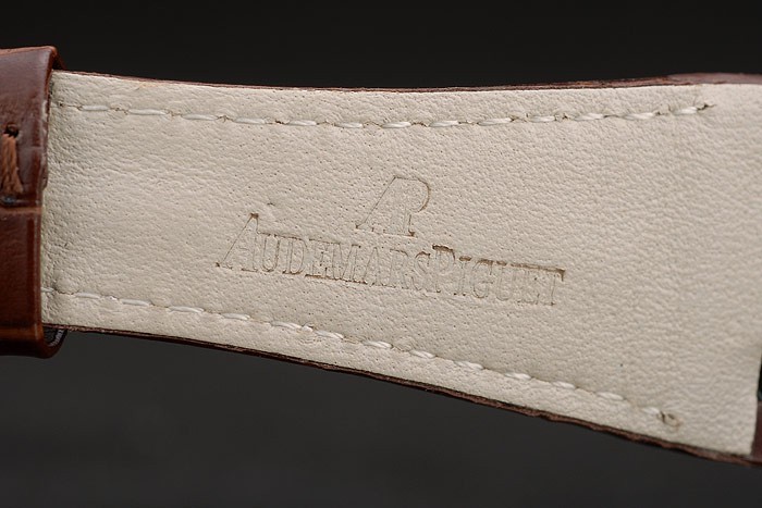 Bracelet: Audemars Piguet ge mbossed bruine krokodil lederen band met Audemars Piguet gegraveerde gepolijst roestvrij stalen haak verborgen clasp