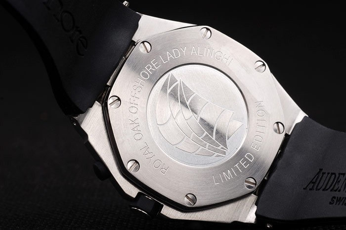 Back: geborsteld roestvrij staal vastgeschroefd terug met Audemars Piguet logo en engravings