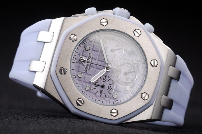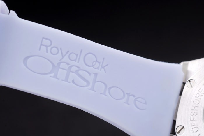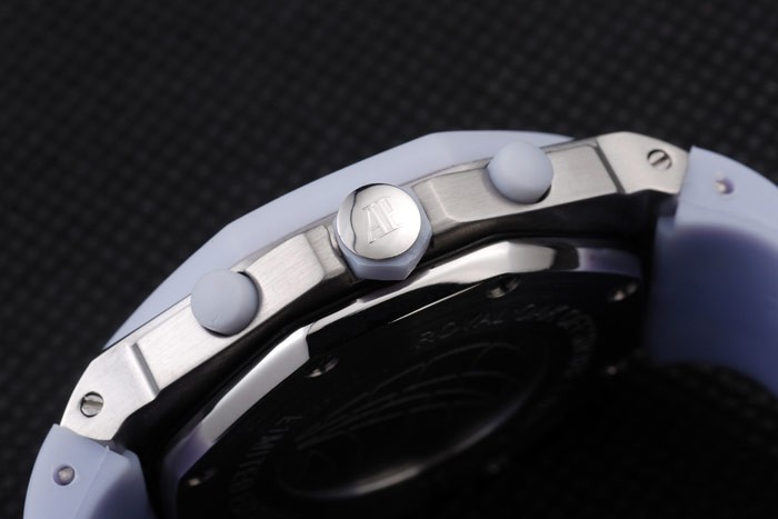 Bracelet: Audemars Piguet Royal Oak Offshore reli f lila rubberen band met Audemars Piguet gegraveerde gepolijst roestvrij staal fold-in clasp