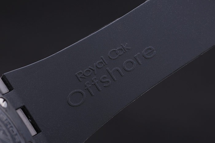 Bracelet: Zwarte rubberen band met warmte reli f Audemars Piguet Royal Oak Offshore stempel en een Audemars Piguet ingeschreven-ion-plated hook-gesp clasp