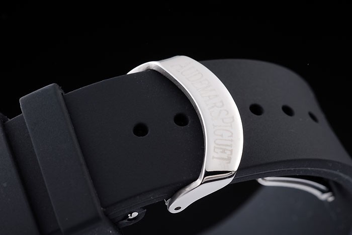 Bracelet: Audemars Piguet reli f zwarte rubberen band met Audemars Piguet gegraveerd rose-goud vouw- in clasp