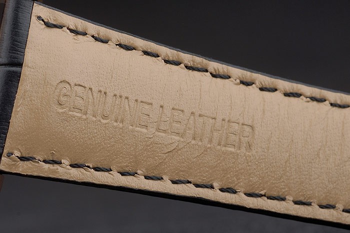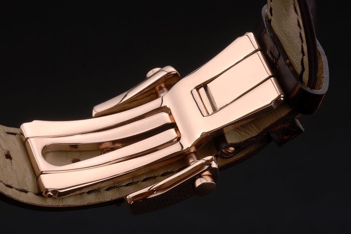 Bracelet: Breguet ge mbossed zwarte krokodillenleren band Brequet gegraveerd met 18k rose vergulde vouw-in hook-gesp clasp
