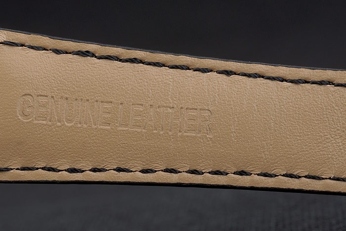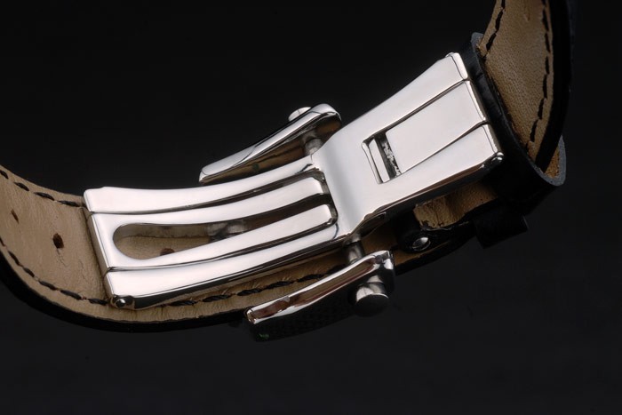 Bracelet: Breguet ge mbossed zwarte krokodillenleren band met gegraveerde Brequet gepolijst roestvrij staal fold-in hook-gesp clasp