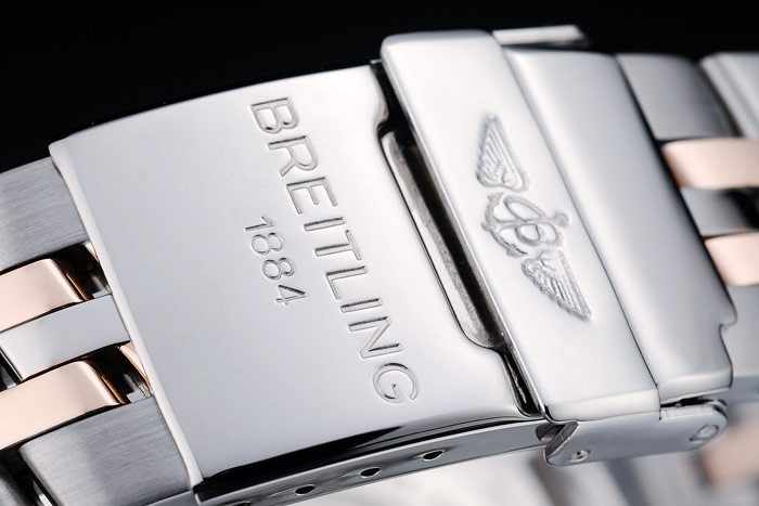 Bracelet: gepolijst roestvrij staal en rose -gold vergulde schakelarmband met Breitling 1884 en logo gegraveerd fold-in drukknop clasp
