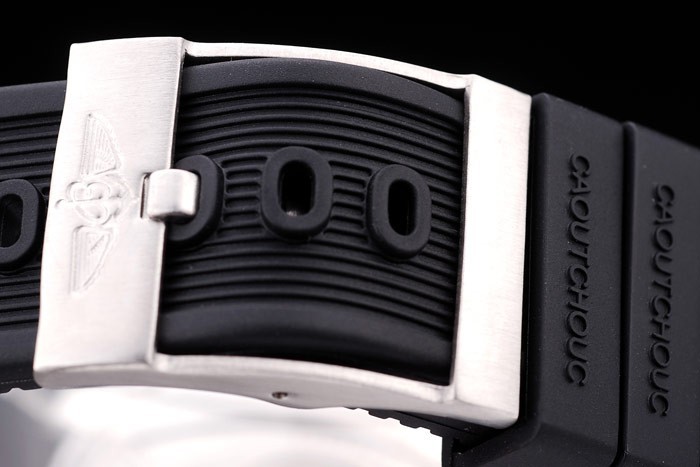 Bracelet: Zwarte rubberen band met Breitling logo gegraveerd roestvrij stalen haak-gesp clasp