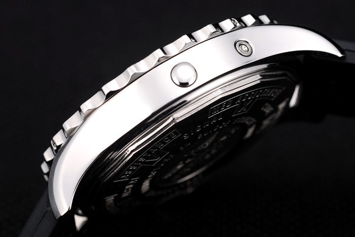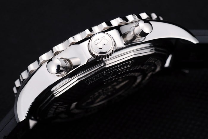 Crown: gepolijst roestvrij staal cutwork kroon met Breitling logo en twee kleinere roestvrij stalen push -knop kronen aan weerszijden van it