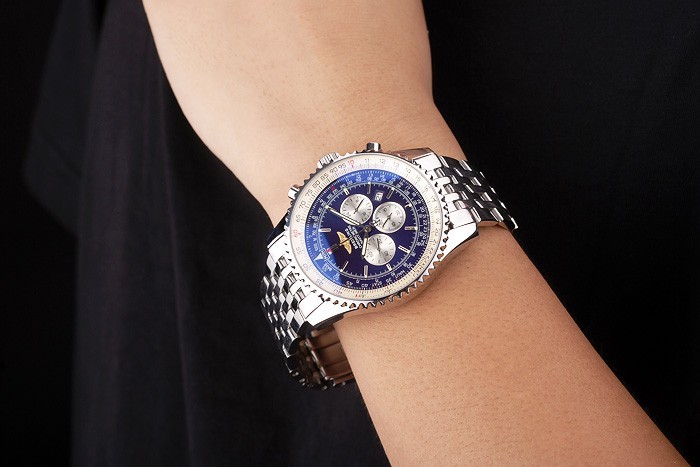 Dit horloge heeft AR glas. Het gezicht kleur zal verschillende kleuren verschijnen, afhankelijk van hoe het licht valt op itBack: Roestvrij staal push-in zaak terug met Breitling engravings