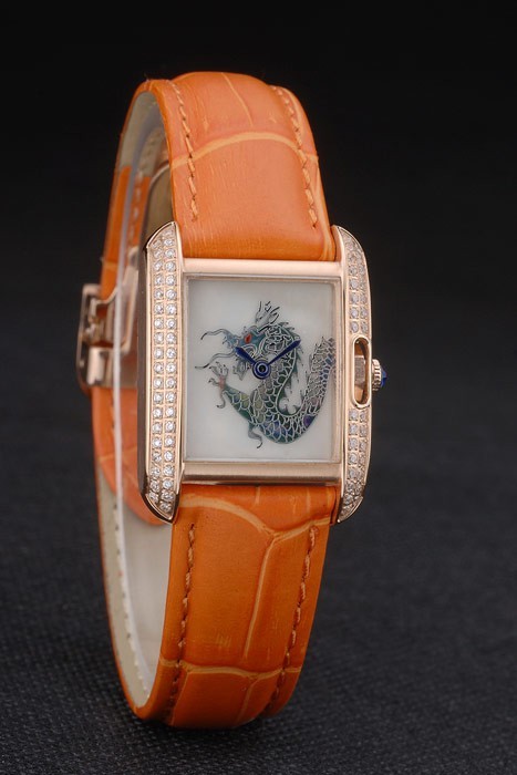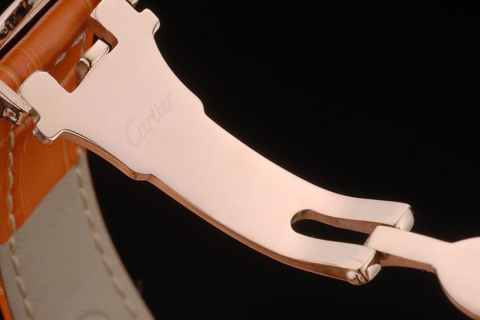 Bracelet: Cartier ge mbossed oranje krokodil lederen band met 18k rose vergulde opvouwen in gesp gesp