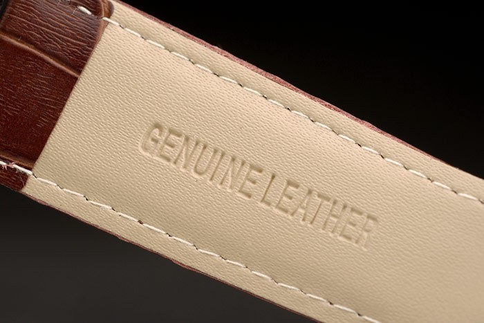 Bracelet: Cartier ge mbossed bruine krokodil lederen band met rose vergulde gesp clasp