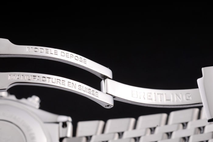 Bracelet: gepolijst roestvrij stalen schakelarmband met Breitling graveren en vouw-in sluiting met Breitling 1884 en logo gegraveerd op top