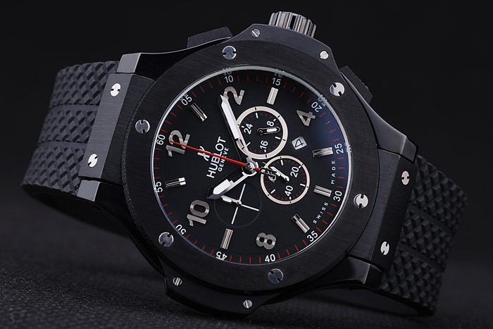 Bracelet: Geweven zwarte rubberen band met-ion-plated drukknop haak sluiting en Hublot engravings