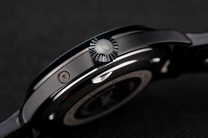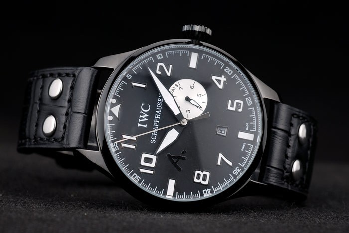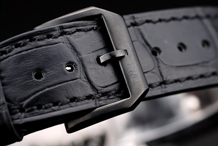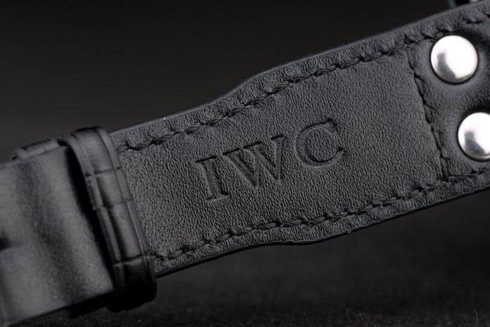 Bracelet: IWC ge mbossed zwarte krokodillenleren band met gegraveerde IWC-ion-plated roestvrij staal haak- clasp