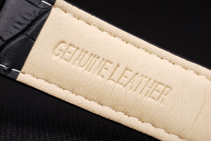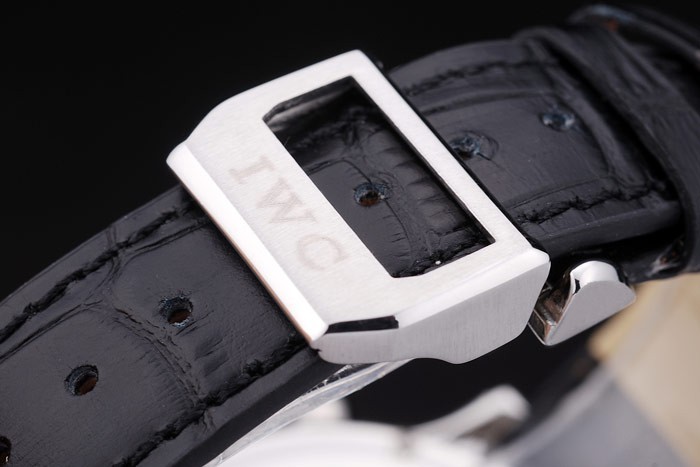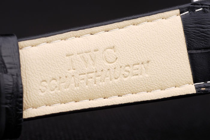 Bracelet: IWC Schaffhausen ge mbossed zwarte krokodillenleren band met IWC ingeschreven roestvrij stalen haak-gesp clasp