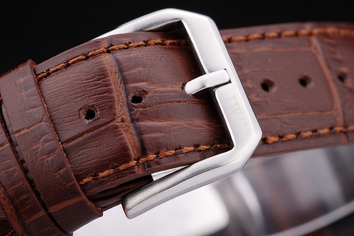 Bracelet: IWC Schaffhausen ge mbossed bruine krokodil lederen band met IWC ingeschreven roestvrij stalen haak-gesp clasp