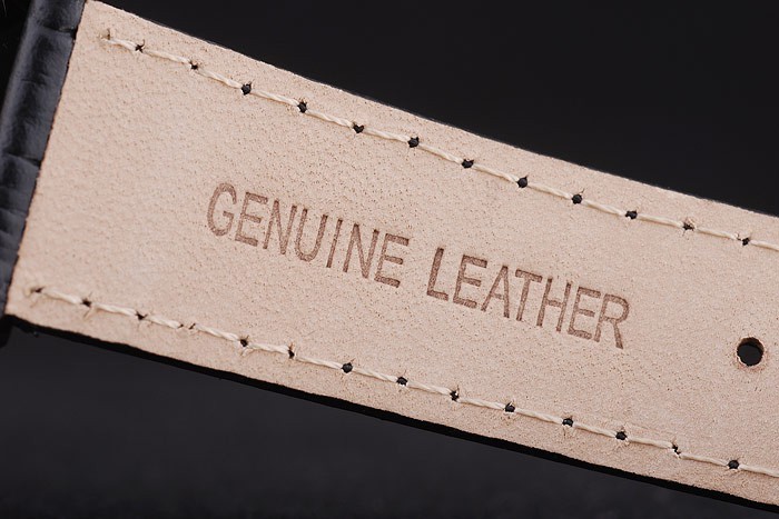 Bracelet: Heat embossed Nomos Glashütte zwarte krokodillenleren band met gegraveerde ion NOMOS -plated hook-gesp clasp