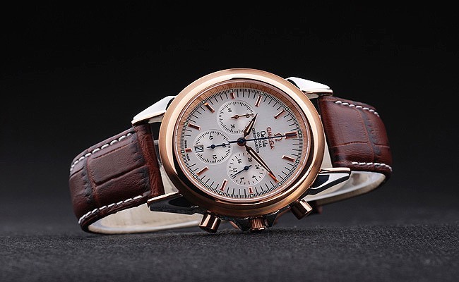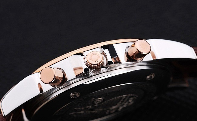 Crown: geel goud cutwork kroon met Omega logo plus twee extra kronen, één aan weerszijden van it