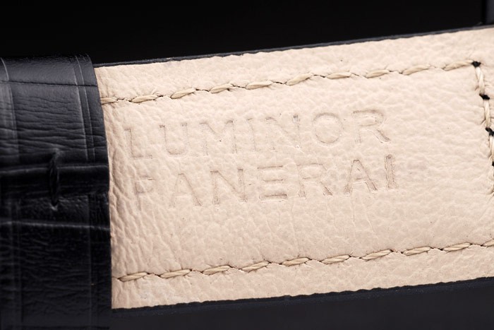Bracelet: Black krokodil lederen band met warmte reli f Luminor Panerai stempel en-ion-plated roestvrij stalen haak-gespsluiting met Panerai engraving