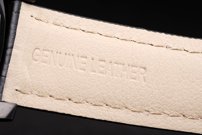 Bracelet: Black krokodil lederen band met witte stiksels en warmte reli f Luminor Panerai stempel en-ion-plated roestvrij stalen haak-gespsluiting met Panerai engraving