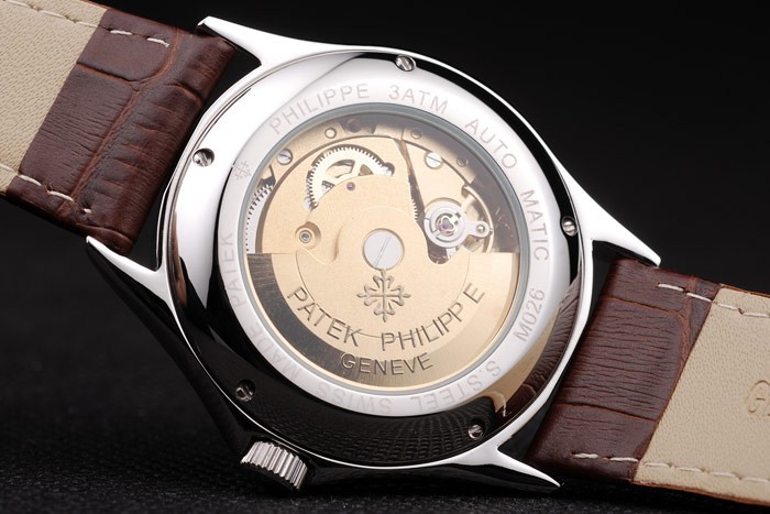 Back: vastgeschroefd roestvrij staal omrande transparante terug met Patek Philippe Geneve inscription