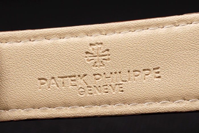Bracelet: Brown krokodil lederen band met warmte reli f Patek Philippe stempel en 18k Rose- vergulde Patek Philippe logo hook-gesp clasp