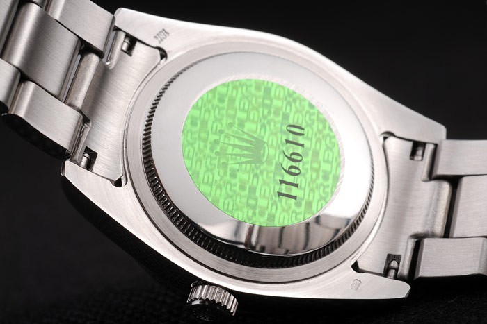 Back: Roestvrij staal push-in zaak terug met groene Rolex logo stamp