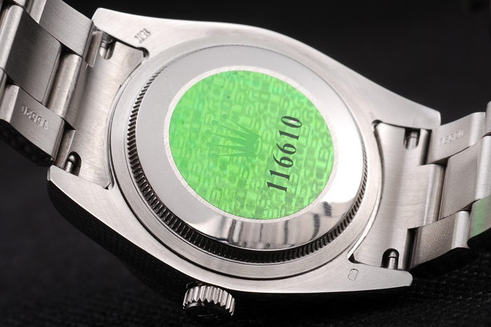 Back: Roestvrij staal push-in zaak terug met groene Rolex logo stamp
