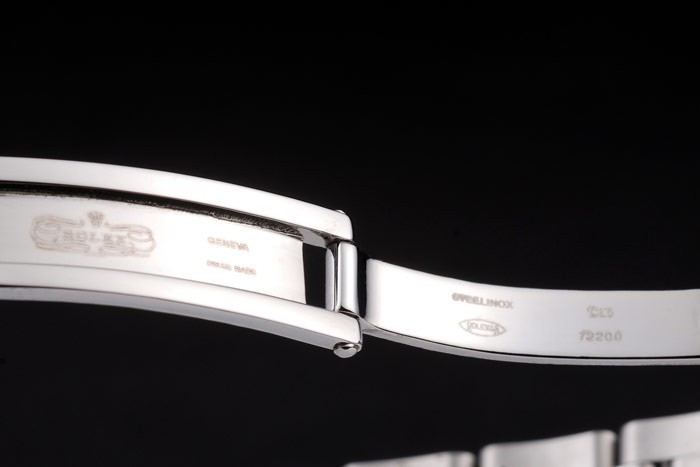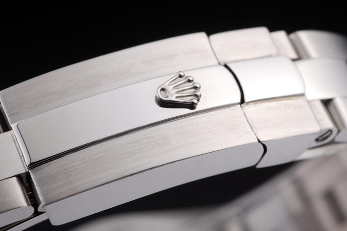 Bracelet: geborsteld roestvrij stalen schakelarmband met Rolex gegraveerde fold-in inzet sluiting weergeven van de Rolex logo