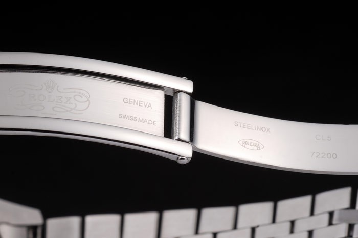 Bracelet: geborsteld roestvrij stalen schakelarmband met Rolex gegraveerde verborgen gesp het weergeven van de Rolex logo