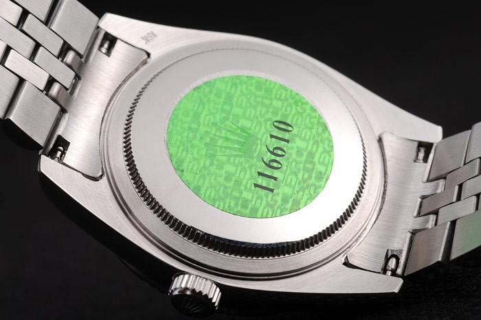 Back: Roestvrij staal push-in zaak terug met groene Rolex logo stamp