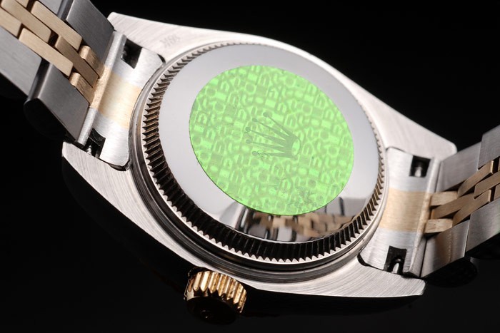 Back: Roestvrij staal push-in zaak terug met groene Rolex logo stamp