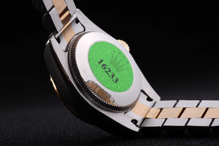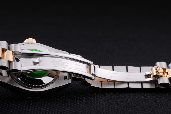 Back: Roestvrij staal push-in zaak terug met groene Rolex logo stamp