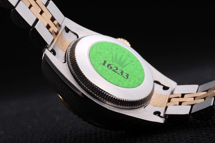 Back: Roestvrij staal push-in zaak terug met groene Rolex logo stamp