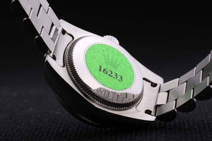 Back: Roestvrij staal push-in zaak terug met groene Rolex logo stamp