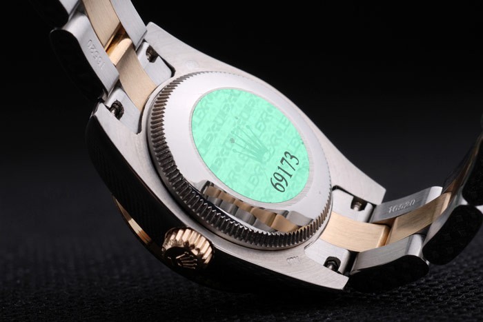 Back: Roestvrij staal push-in zaak terug met groene Rolex logo stamp