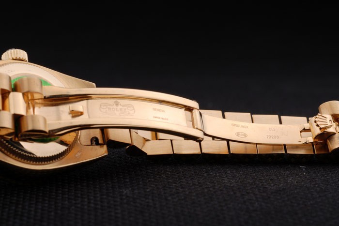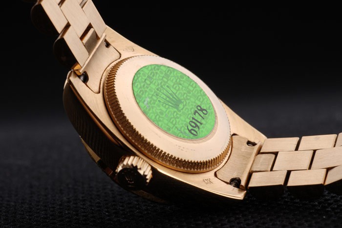 Back: 18k geel goud vergulde roestvrij staal push-in zaak terug met groene Rolex logo stamp