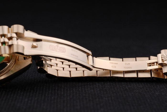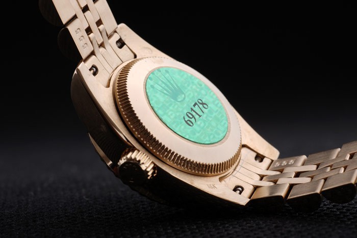 Back: 18k geel goud vergulde roestvrij staal push-in zaak terug met groene Rolex logo stamp