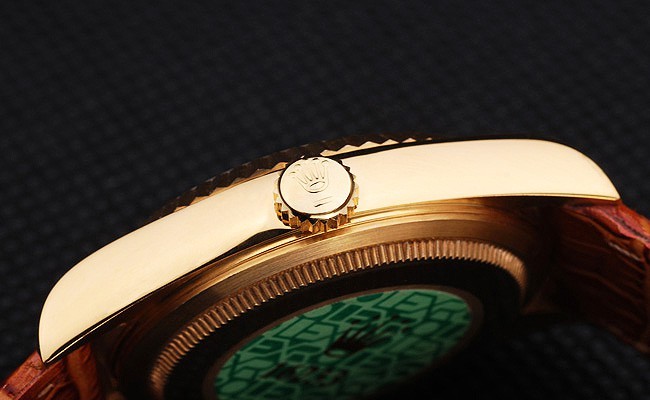 Back: 18k geel goud vergulde roestvrij staal push-in zaak terug met groene Rolex logo stamp