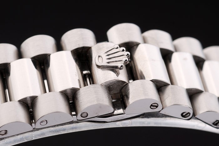 Bracelet: geborsteld en gepolijst roestvrij stalen kettingen met vouw over sluiting en Rolex kroon engraving