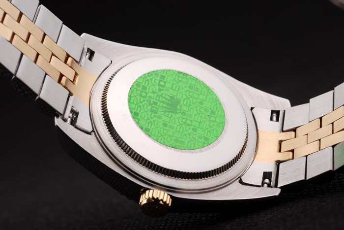 Back: Push in roestvrij staal terug met groene Rolex sticker en markings