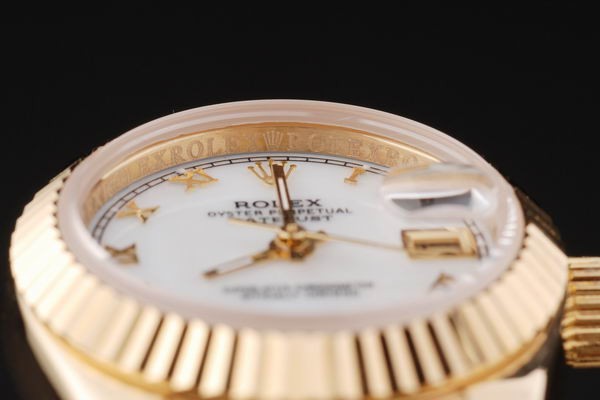 1Back: Duw terug in 18K geel goud met groene Rolex sticker en markings
