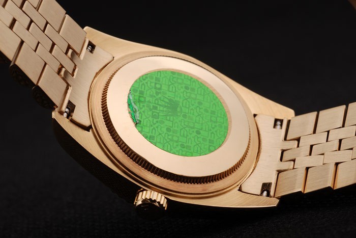 Back: Duw terug in 18K geel goud met groene Rolex sticker en markings