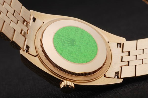 Back: Duw terug in 18K geel goud met groene Rolex sticker en markings