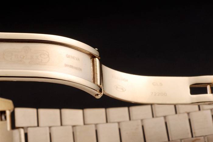 Bracelet: 18k geel goud vergulde roestvrij stalen schakelarmband met Rolex gegraveerde verborgen sluiting weergave de Rolex logo