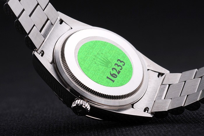 Back: Roestvrij staal push-in zaak terug met groene Rolex logo stamp