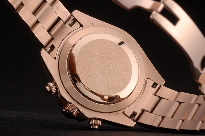 Back: 18k rose vergulde vastklikken terug met Rolex inscriptions